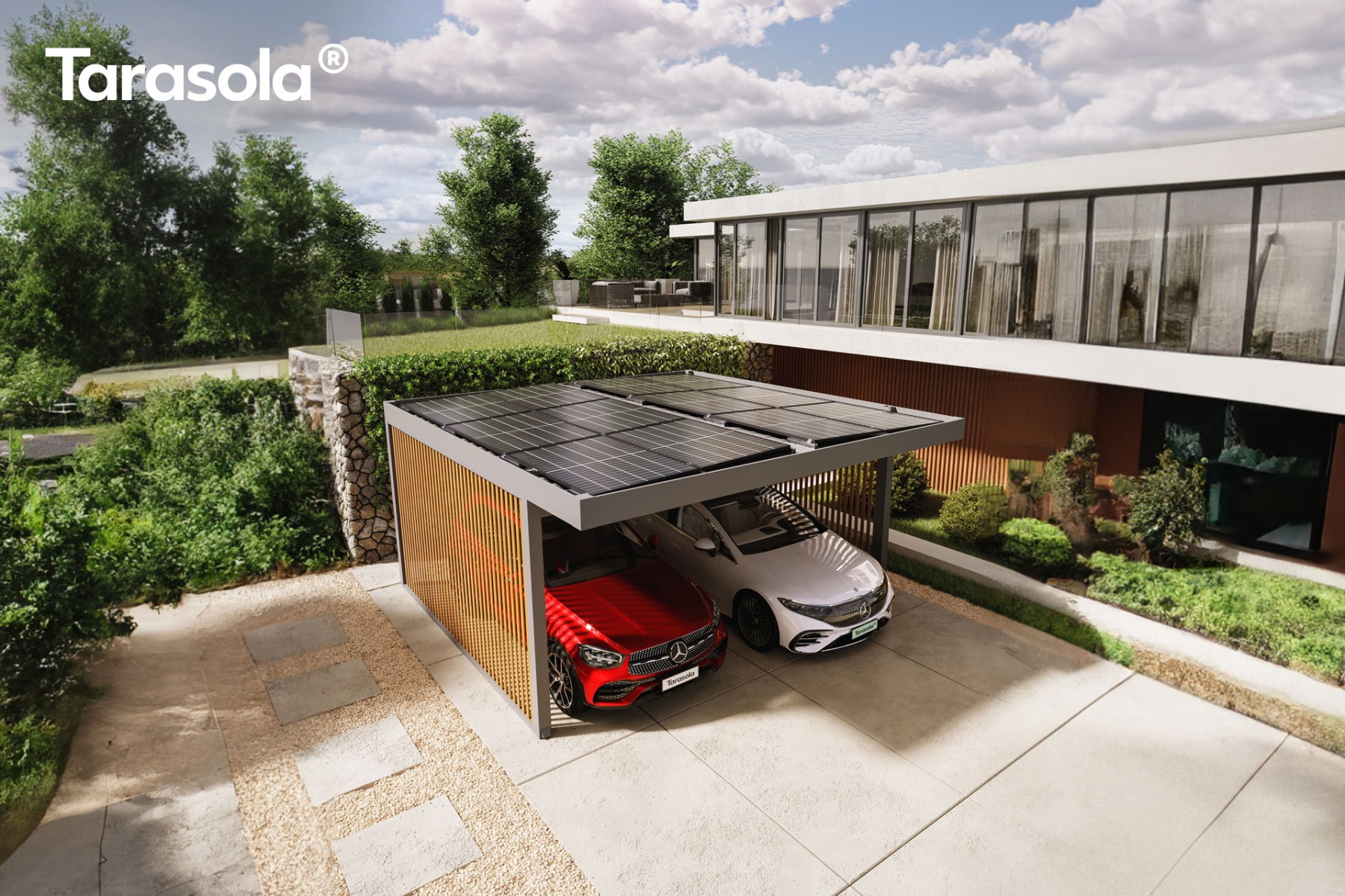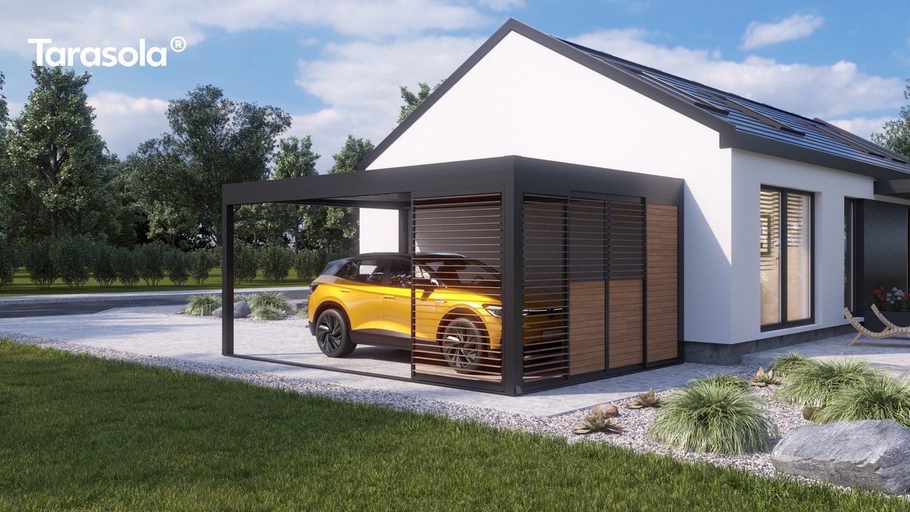 Minimalistyczna forma i staranne wykończenie, pozbawione widocznych elementów montażowych, nadają całości nowoczesny i elegancki wygląd. Szeroki wybór kolorów pozwala łatwo dopasować Carport do architektury domu oraz otoczenia, tworząc spójną i estetyczną przestrzeń.